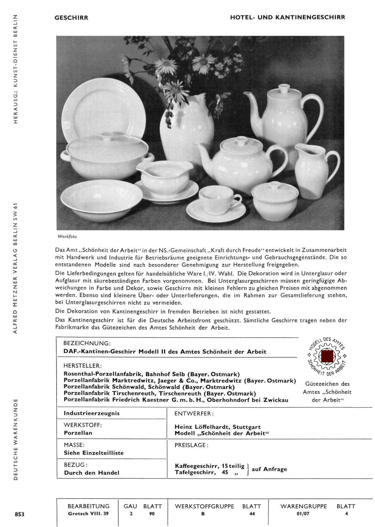 Hintergrund: 1933 - 1945 • Deutsche Arbeitsfront (DAF) • Kantinenporzellan des Amts Schönheit der Arbeit
