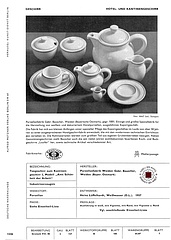 Die Lieferbedingungen gelten für handelsübliche Ware I./IV. Wahl. Die Dekoration wird in Unterglasur oder Aufglasur mit säurebeständigen Farben vorgenommen. Bei Unterglasurgeschirren müssen geringfügige Abweichungen in Farbe und Dekor, sowie Geschirre mit kleinen Fehlern zu gleichen Preisen mit abgenommen werden. Ebenso sind kleinere Über- oder Unterlieferungen, die im Rahmen zur Gesamtlieferung stehen, bei Unterglasurgeschirren nicht zu vermeiden.1