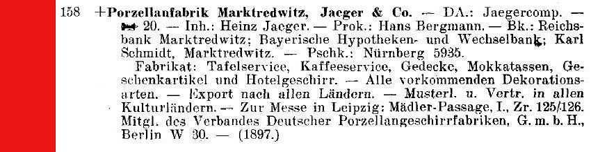 | Bayerische Ostmark | Marktredwitz | PF Jaeger & Co. 👁 | X | ☑ | ||||