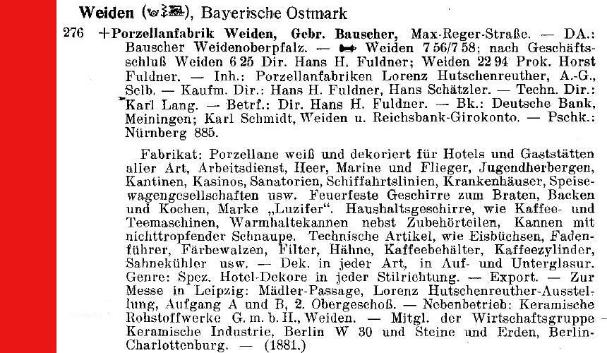 | Bayerische Ostmark | Weiden | PF Bauscher, Weiden 👁 | X | X | ☑ | |||