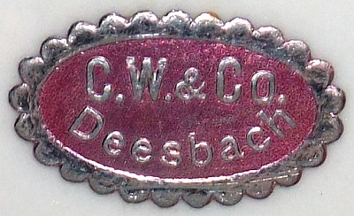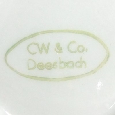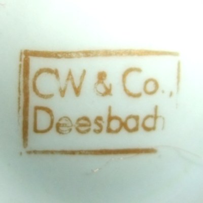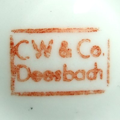 Die hier gezeigten Porzellanmarken wurden auch auf anderen Porzellangeschirren bzw. -formen dieser Firma zur Markung verwendet. Diese Tatsache findet hier jedoch bewusst keine weitere Berücksichtigung.