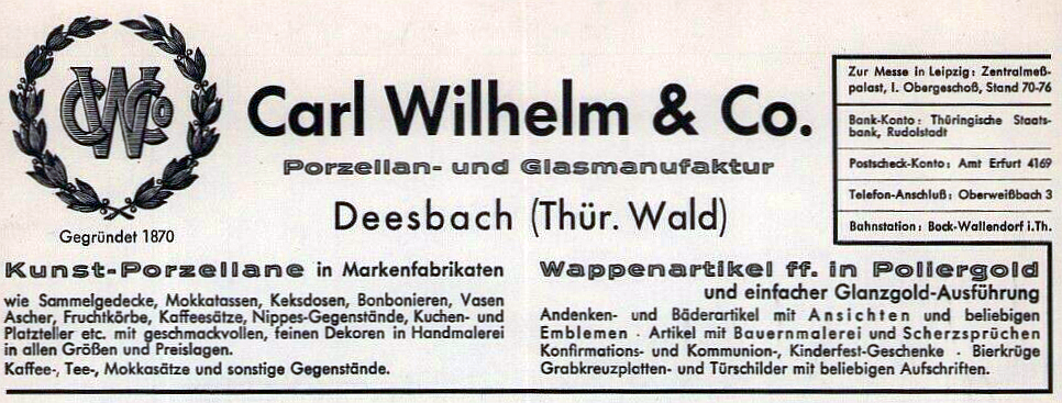 Rechtsnachfolger war nach der Verstaatlichung um 1972 die Porzellanmalerei Lichte/Deesbach als Teil der »VEB Porzellanwerke Lichte und Piesau«.