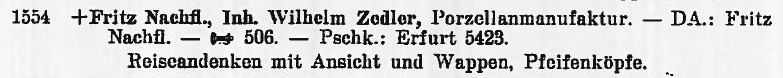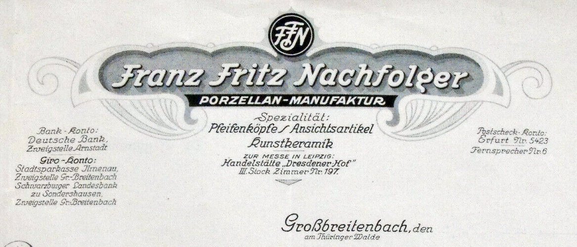 Weitergeführt 1906 - 1971: Franz Fritz Nachfolger, Porzellanmalerei.