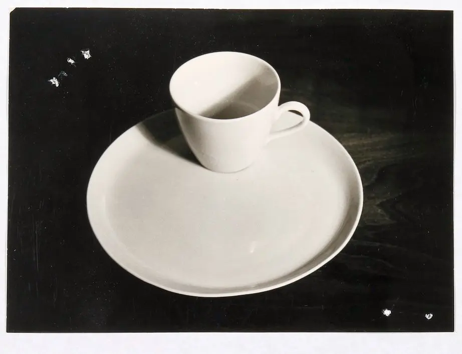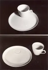 Das Gedeckmodel entspricht einem runden Teller mit am Rand ansteigendem Bord und einer deutlich exzentrisch liegenden Mulde für die Tasse - eine Untertasse war deshalb nicht notwendig.
