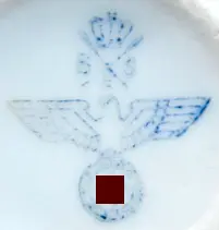 (1) Behördenkennzeichnung: Wehrmachtsadler. Vermutlich wurde Geschirr für Erholungseinrichtungen von Wehrmachtsangehörigen so gekennzeichnet.