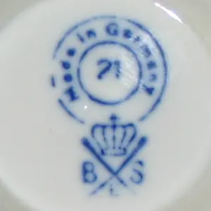 Seit ca. 1950 gibt es zwei unterschiedliche Gestaltungen der Krone über dem Diagonalkreuz. Da die Firma vor allem exportorientiert war und hier neben den Skandinavischen und Benelux-Ländern vor allem auch nach Osteuropa und die Türkei lieferten, gibt es entspechend viel mit dem jeweils aktuellen Länderkennzeichen (Germany, Germany East, DDR, GDR) markiertes Porzellan.